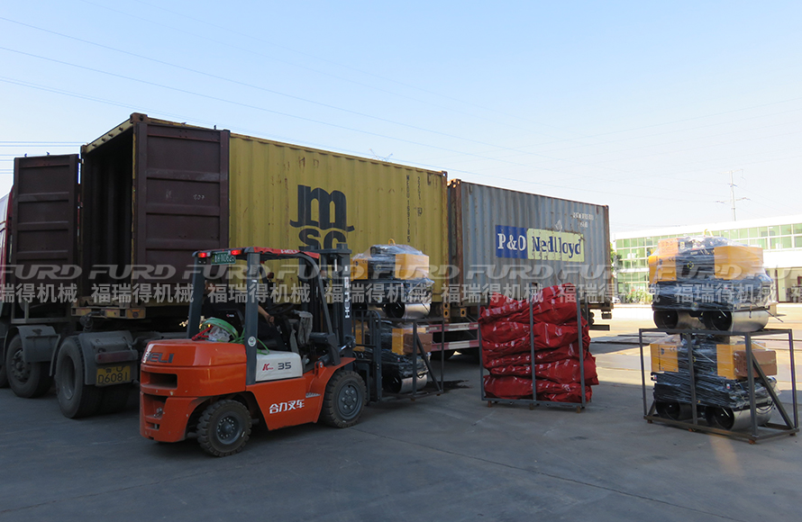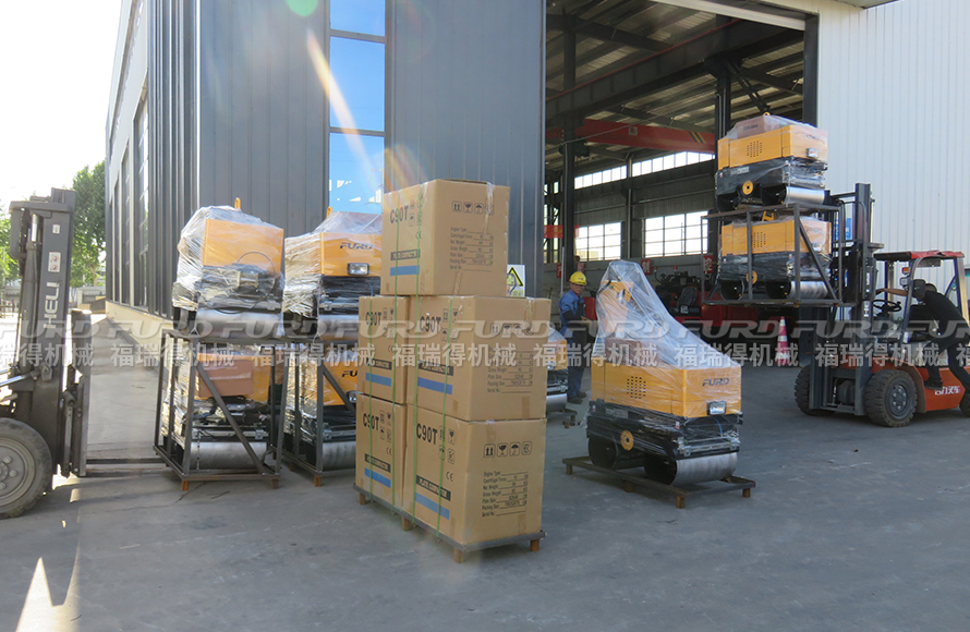 6月5日,福瑞得機械12臺手扶雙鋼輪壓路機打包裝柜出口澳大利亞。