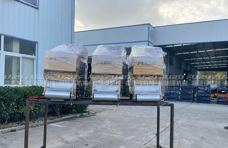 福瑞得3臺(tái)手扶單鋼輪壓路機(jī)打包發(fā)往日照