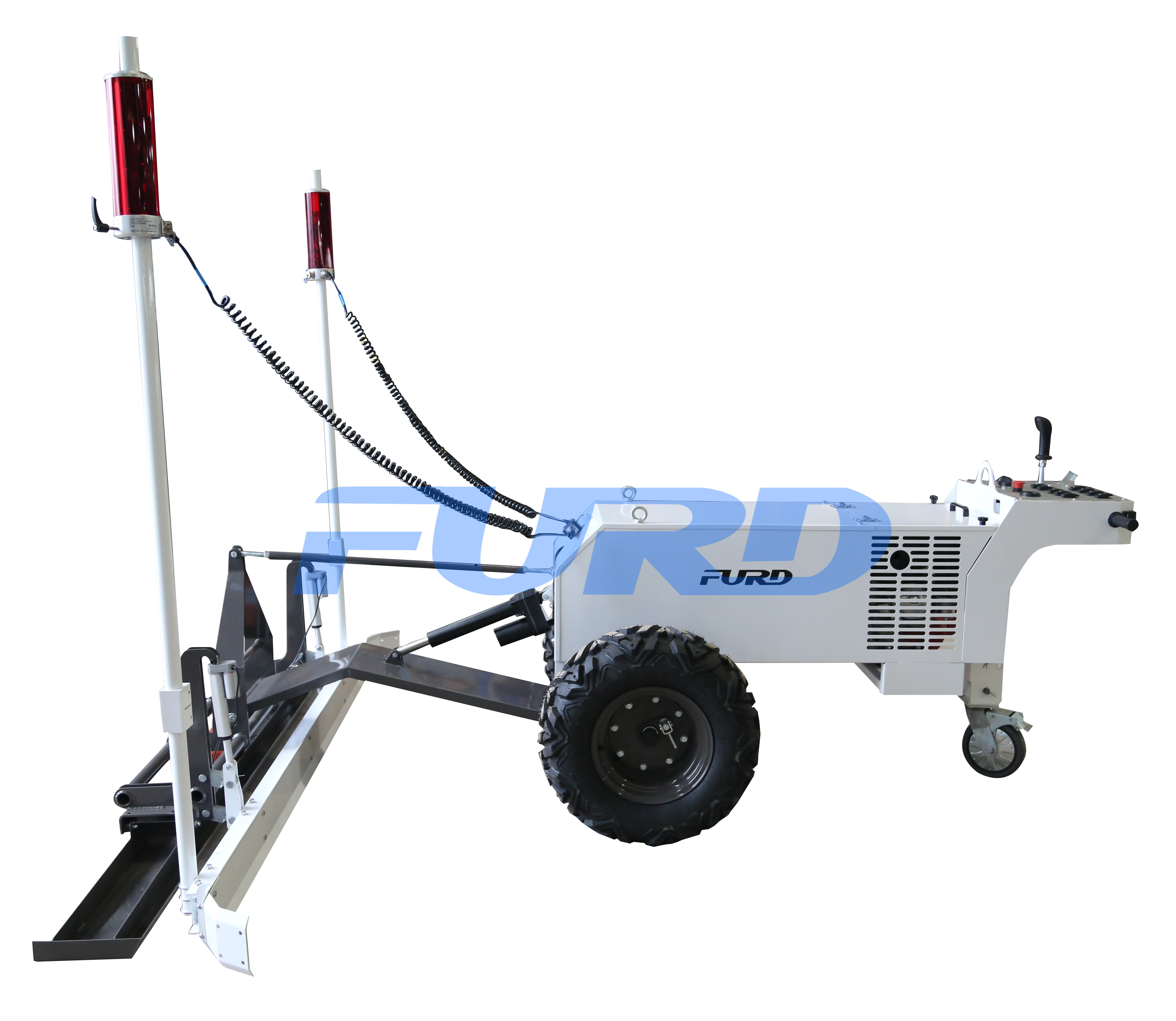 通過液壓驅(qū)動(dòng)輛輪行走系統(tǒng),使得輪子可以獨(dú)自運(yùn)動(dòng),與整平頭互不影響,使用手動(dòng)控制輪子的前進(jìn)、后退、轉(zhuǎn)向及行進(jìn)速度,移動(dòng)非常方便。