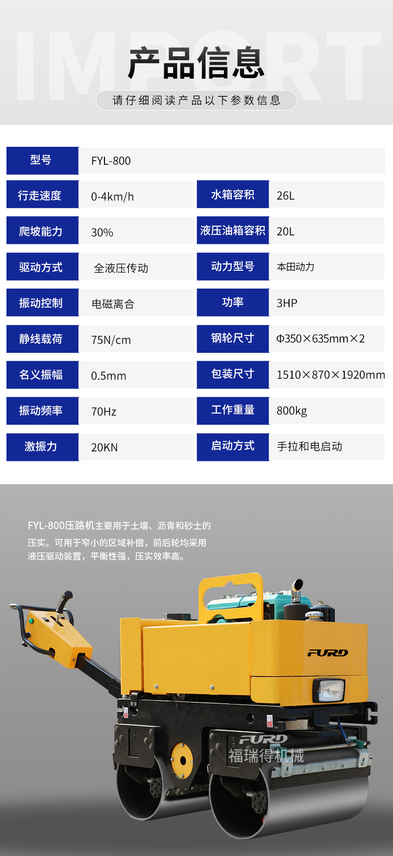 FYL-800小型液壓手扶壓路機(jī)