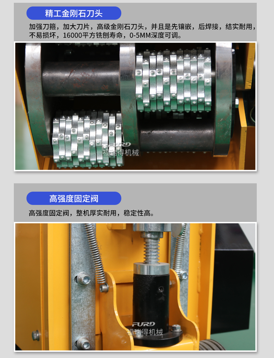 用于橋面鋪設(shè)瀝青或車間舊的混凝土地面重新攤鋪混凝土之前,清除水泥浮漿以及鏟平拉毛, 也用于清除建筑施工中的堅硬灰渣。