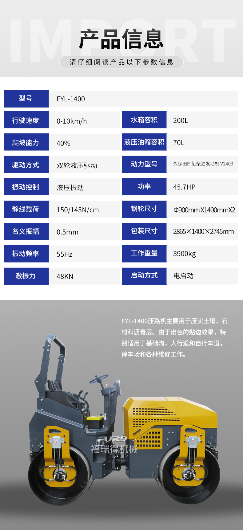 FYL-1400 4噸全液壓座駕雙鋼輪壓路機(jī)