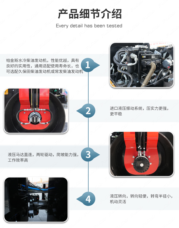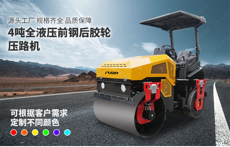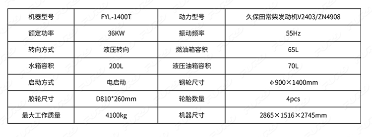 FYL-1400T為橡膠輪胎振動壓路機,該壓路機前有鋼輪,后有橡膠輪,結(jié)合鋼輪和輪胎壓路機的優(yōu)點,具有更高的工作效率。