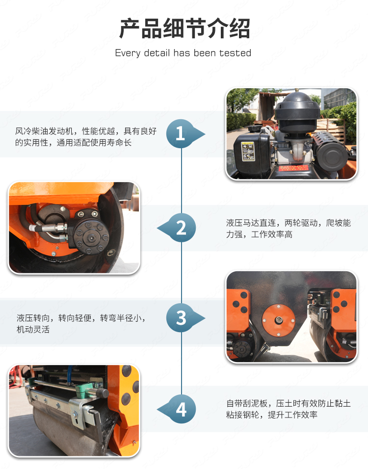 FYL-800是800kg液壓轉(zhuǎn)向壓路機,采用重型變量柱塞泵,液壓馬達驅(qū)動變速行走,電磁離合器振動。